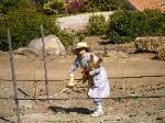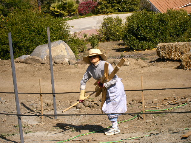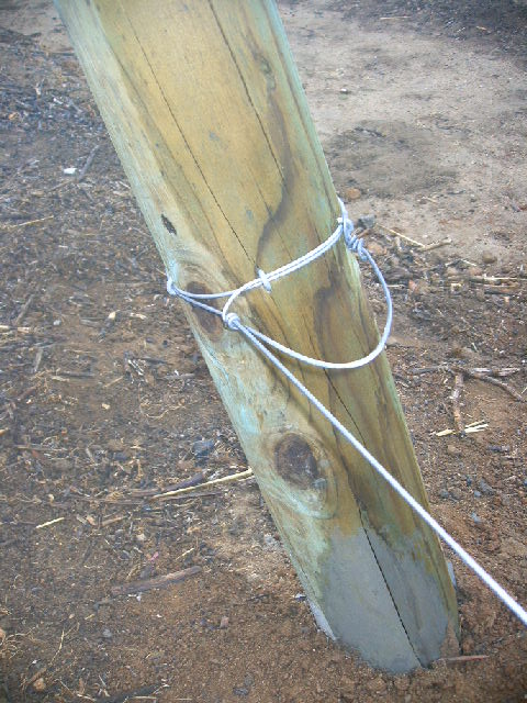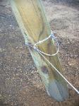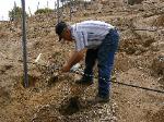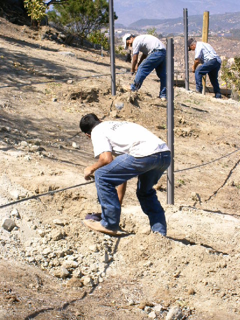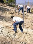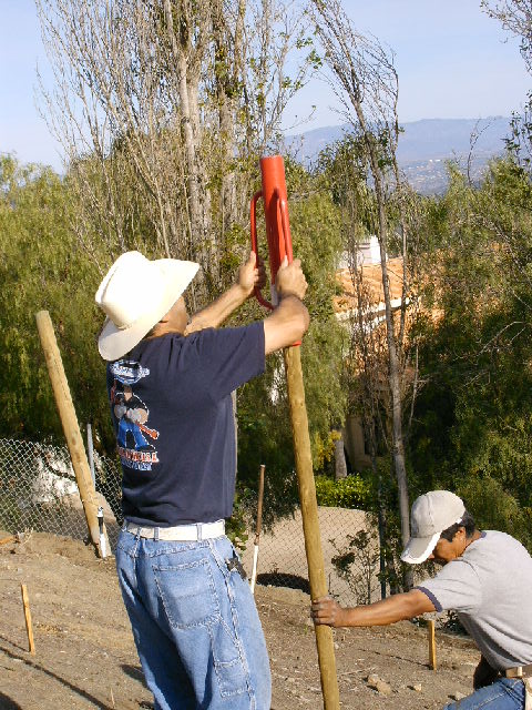 Pounding the wooden posts into the