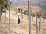 whereas the rest of the vineyard uses metal stakes.