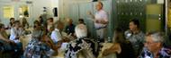 | August 27, 2005 Part of the winemaker’s craft is knowing when to make adjustments. For those with 25 – 30 years of experience, their skill allows them to make fine adjustments, as Picasso might to a painting. But for the novice, adjusting nature’s work is as dangerous to the wine as a 5-year old playing with matches. Something didn’t seem right with our 2004 Syrah, which started out with so much promise and high expectation. I’m surprised because the bottle I brought back to the East Coast a few weeks ago – after being decantered for a full-day and enjoyed with roast beef (after a couple of glasses of champagne with hors d’oeuvres) tasted so smooth and was enjoyable. However, when tasting this week, the wine starts out full, strong, but finishes weak with a “tart” aftertaste. This tart aftertaste was a mystery. I took a sample to the local winemakers' association monthly meeting last week, and asked a few experienced wine makers to taste it. One fellow took a sip and spit it out: “Too much acid!” Asked another, “Did it go through malolactic fermentation?” How was I supposed to know (at least now I know what malolcatic fermentation is … sort of). When I returned home that evening I tested a sample with an acid testing kit, which didn’t indicate acidity was too high. I reviewed the notes Ryan gave me – who had done a chemical test back in April – which indicated the wine was at a proper acidity, pH and Sulfur Dioxide. We are getting near the time when I was thinking about bottling, but something didn’t feel right. I resolved to find help. I sought out The Master. Lum Eisenman spends Wednesday’s at Belle Marie Winery in Escondido and this morning he was not particularly busy (the crush season has not yet started for them). I called the day before. Mary – for whom the winery is named – answered the phone, and was kind enough to invite me to stop by. (Another example of the camaraderie that exists in the wine industry -- at least in Southern California. And why not, a good drink makes good companions. Or, misery -- and the hard work of making wine -- loves company.) I walked into the winery shortly after 9:30 am, and behind a stack of wine barrels reaching up to the ceiling was Lum with a chart in one hand and a glass of red in the other. I asked him if he would test it, and he agreed. I had siphoned a sample from our barrel that morning. He poured some into his glass, sniffed, and passed the wine to an assistant cellar master to smell. There was something about that smell that wasn’t right to him. “Can you notice it?” “I just brushed my teeth,” I replied. I told him I took that sample directly from the barrel that morning, and that he might be noticing a slight essence from the little blue bucket I emptied it in before filling the plastic water bottle. He pulled a chemical from the cupboard, and measured a couple of drops into the glass, swirled it, and put it to his nose. “Isn’t that better?” he asked, passing the glass around. I’m reminded of junior high science class as Lum lures the correct amount of wine into a measuring device with his mouth (the scientific term for the device escapes me at the moment) and empties it into a beaker. He then dilutes the wine, adds a chemical, a drop at a time, causing the wine to turn darker, until it resembles the ink of an octopus. He’s doing a measurement for acidity, which I did in our bathroom sink just the night before. He does it with precision. It measures .64 (in the ballpark). Next, he measures the pH. The first reading is off the scale, so he recalibrates the equipment. The pH comes in at 3.53 (in the ballpark). There’s nothing wrong with the wine, and I breath a sigh of relief. He takes another taste. “This is clear.” A compliment. “It’s just young, and needs to age more,” he advises. “Don’t put it in the bottle too soon. Try adding some oak chips.” The oak from our French oak barrel has not come through. I wonder if last year when we cleaned out the barrel, we may have washed the flavor away. He draws for me three sizes of oak chips. “The big ones will take about 3 months,” to impart their flavor. The medium sized ones less time. “These will take about a week,” he says of the small chips. The chips I’ve ordered haven’t arrived, so I’m not sure what size I’ll be getting. “Taste it after adding the chips, then decide when to put it into the bottle.” “There are no pathogens in wine,” he says. I tell him the story related to me by my wife, about the guy who drank fermenting grape juice and didn’t live to write about it. “But if you’re in the vineyard, and pass around the glass and someone has a cold, everyone’s going to get it,” he warns. “You’re just drinking grape juice.” The gospel according to Lum states that you can pass around a wine glass and everyone may drink from it without fear of catching a cold. I heard something similar from Father Cory Randall, the retired rector of St. Peter’s Del Mar Church, who said that you’re likely to get germs from people dunking the host (the bread) during Eucharist rather than taking a sip directly from the cup. Before the Master, I feel lower than Luke Skywalker before meeting Yoda the first time. I am witnessing a living legend at work. There are no photographs. No autographs. No declaration of how I aspire to follow in his footsteps. It’s a moment in time, and I feel it will be repeated in the years ahead. “How much do I owe you?” reaching into my pocket. He’s a professional providing a service, and I am glad to pay for the advice. “How about a bottle of wine?” he asks. How about a case, I think. “Yes sir,” gladly. Another example of generosity of the fraternal order of winemakers. “Do you need the wine for topping?” he asks of the leftover. “I have plenty for that, but will take it and put it to good use.” I decide to give it to Jose at the Projector Doc